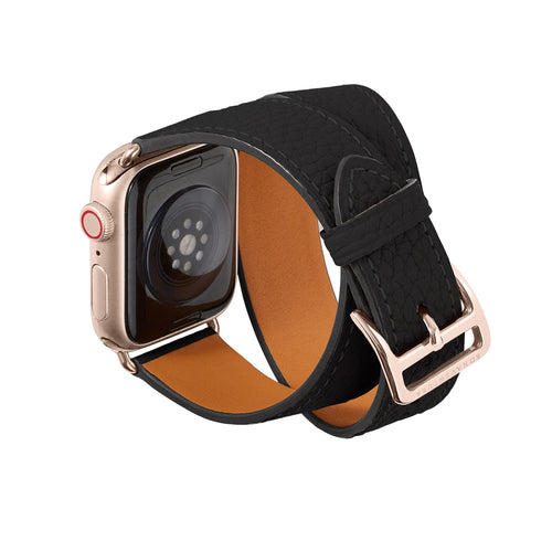سوار apple Watch دبل تور من جلد متقلص (موصل ذهبي)