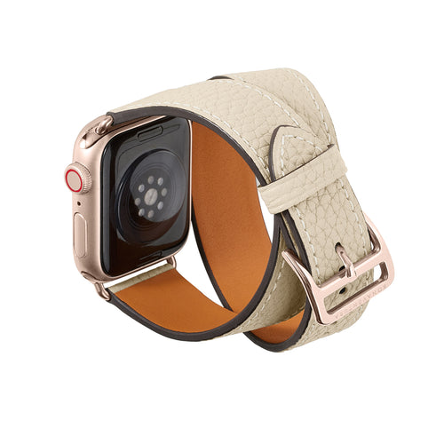سوار apple Watch دبل تور من جلد متقلص (موصل ذهبي)