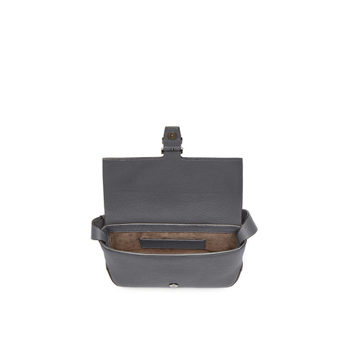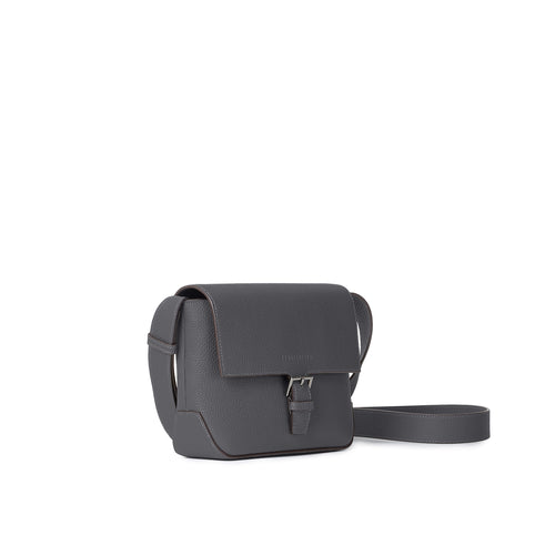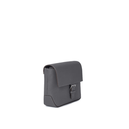 Gino Crossbody Bag with Flap Shrink Leather (Charcoal Gray)