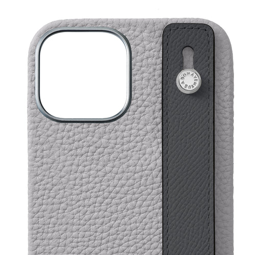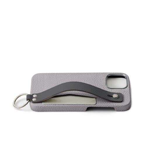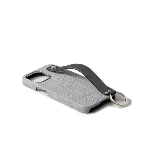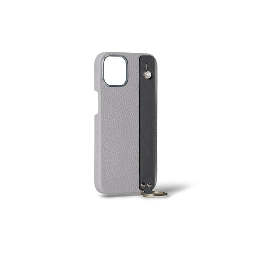 iPhone 15 Back Cover Case with Handle Shrink Leather (True Gray × Charcoal Gray - Silver)