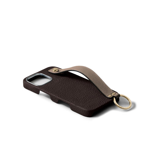 غطاء خلفي لهاتف IPhone 16 مع مقبض من جلد منكمش