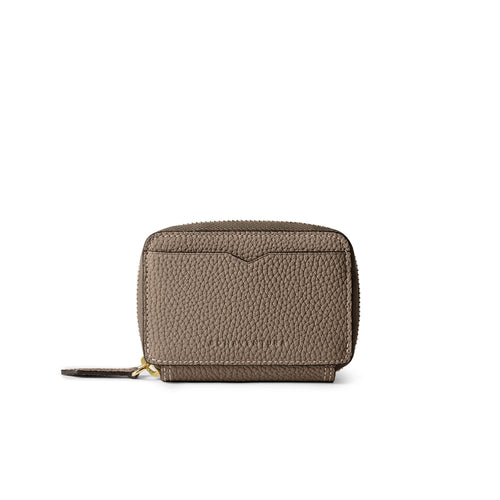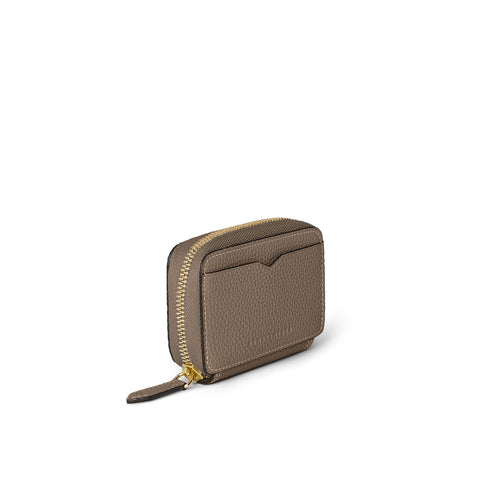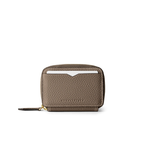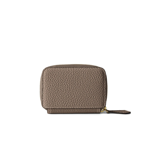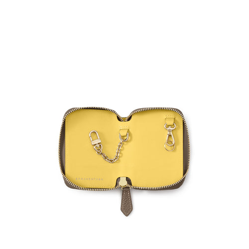 Round Zip Smart Key Case Shrink Leather (Etoupe × Yellow)