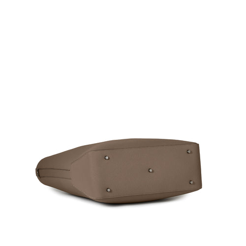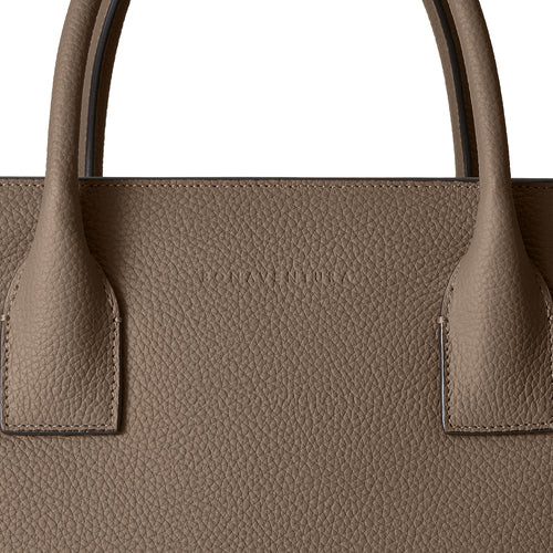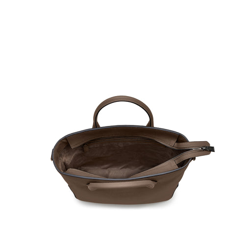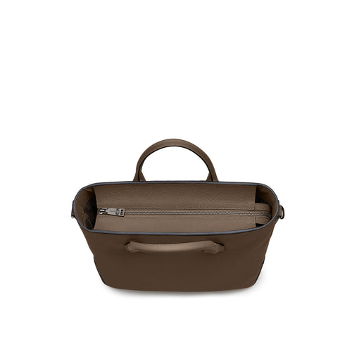 - A luxurious tote bag crafted with a single, generous piece of premium shrunken leather on one side.