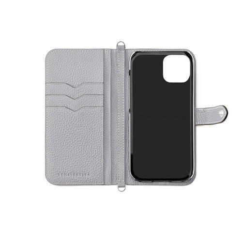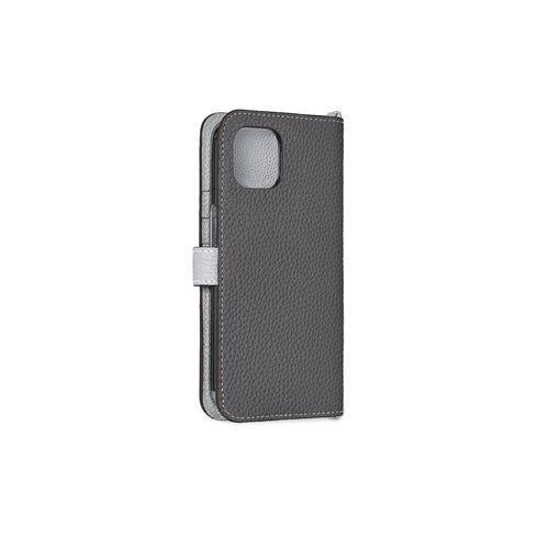 iPhone 13 Belted Diary Case Shrink Leather (Charcoal Gray × True Gray)