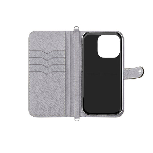 iPhone 15 Pro Max Belted Diary Case Shrink Leather (Charcoal Gray × True Gray)