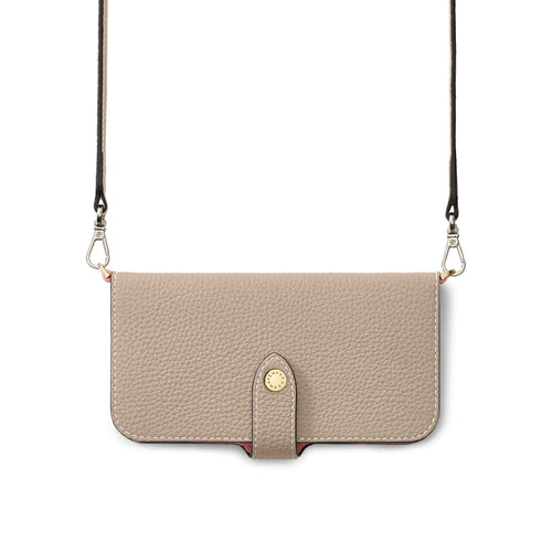 iPhone 16 Belted Diary Case Shrink Leather (Greige × Coral Pink)