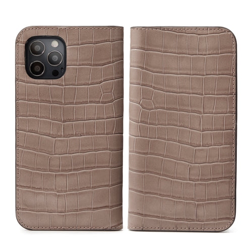iPhone 12 / 12 Pro Diary Case Embossed Croco Leather (Etoupe)