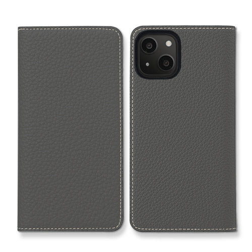 iPhone 13 Diary Case Shrink Leather (Charcoal Gray)