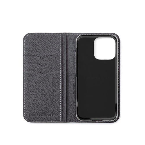 iPhone 14 Pro Diary Case Shrink Leather (Charcoal Gray)
