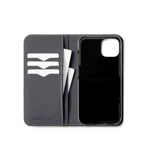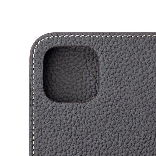 iPhone 15 Diary Case Shrink Leather (Charcoal Gray)