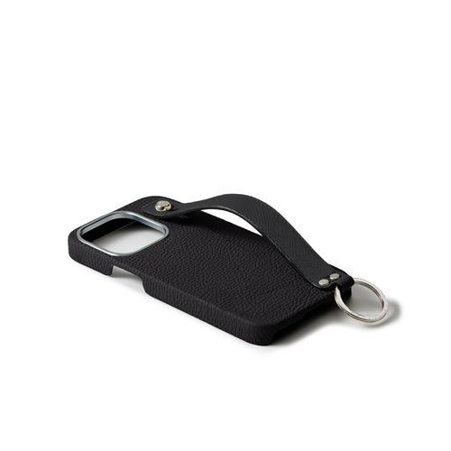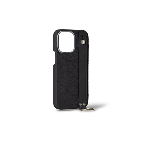 iPhone 15 Pro Back Cover Case with Handle Shrink Leather (Black - Silver)