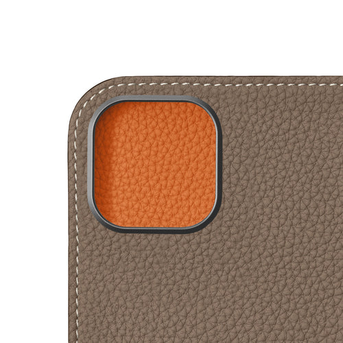 iPhone 17 Diary Case Shrink Leather (Etoupe × Orange)