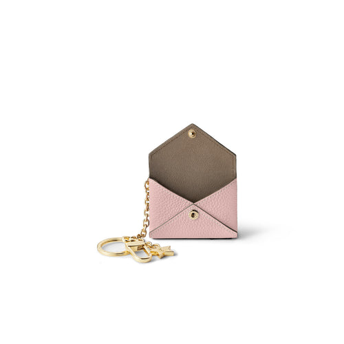- A keychain featuring a star charm and an envelope-shaped pouch made from premium leather.