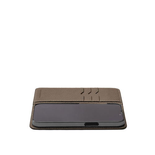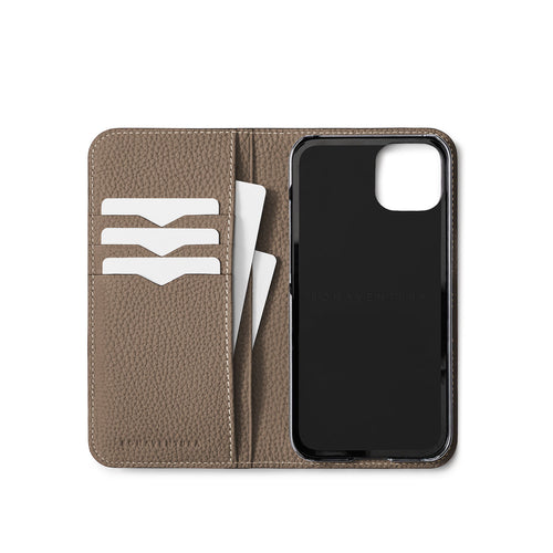 IPhone -kotelo, joka korostaa nahan kauneutta. - Tämä päiväkirjatyylinen kotelo tarjoaa luotettavan suojan älypuhelimellesi.