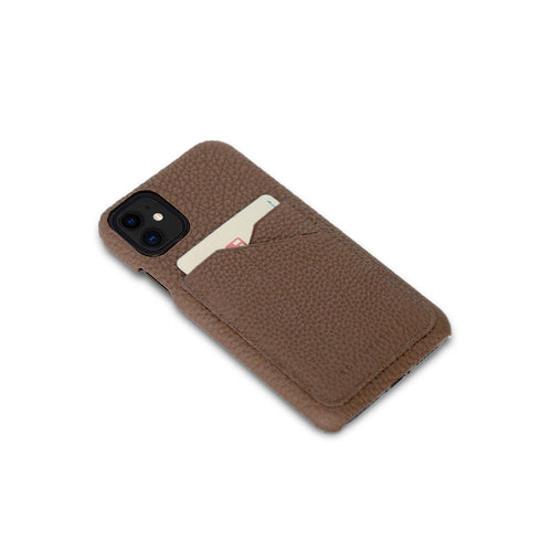 - Tiedot: Aidosta nahasta valmistettu älypuhelimen kotelo, jossa on kaksi korttitaskua takana