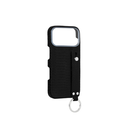 iPhone 17 Pro Max Back Cover Case with Handle Embossed Lizard Leather