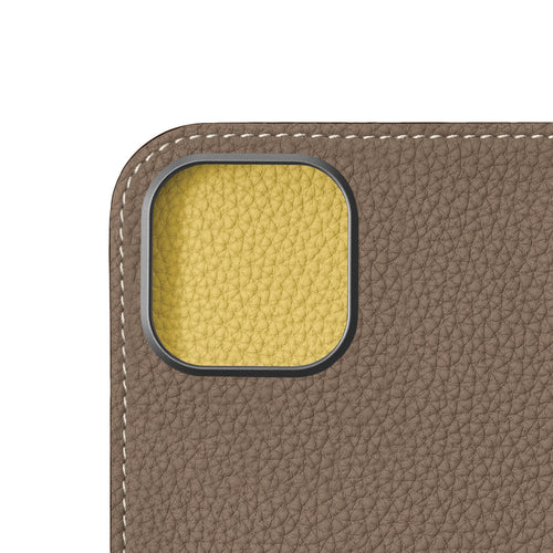 iPhone 16 Diary Case Shrink Leather (Etoupe × Yellow)