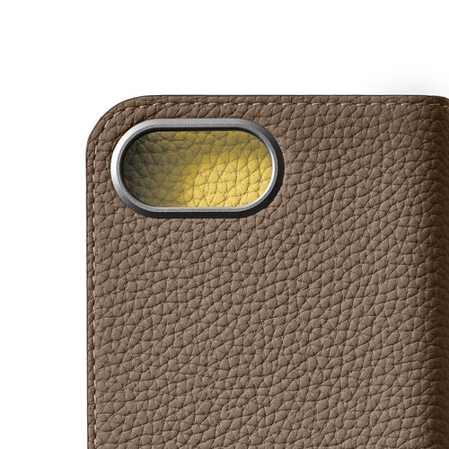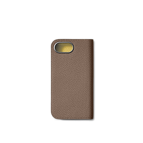 iPhone 16e Diary Case Shrink Leather (Etoupe × Yellow)
