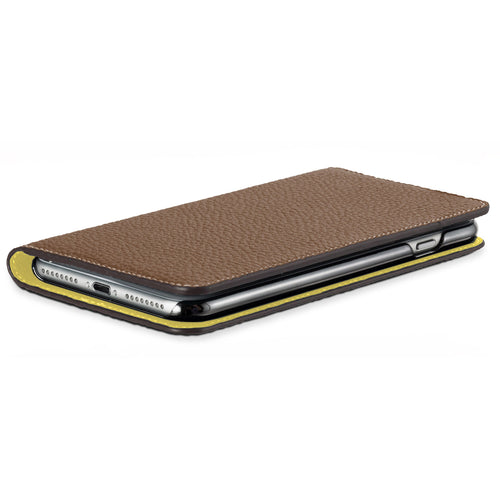 iPhone X / Xs Diary Case Shrink Leather (Etoupe × Yellow)