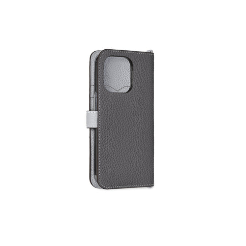 iPhone 13 Pro Belted Diary Case Shrink Leather (Charcoal Gray × True Gray)