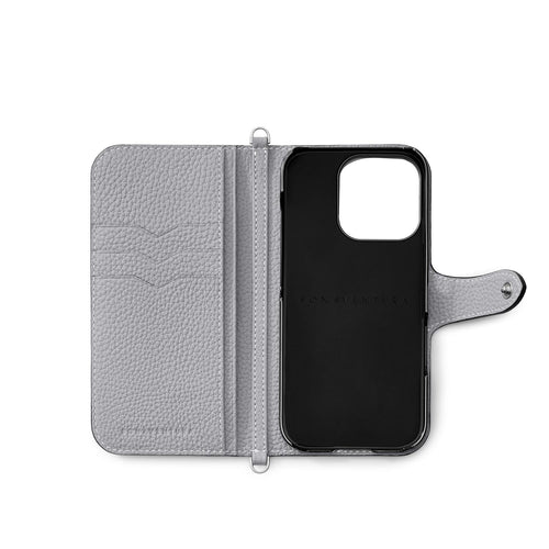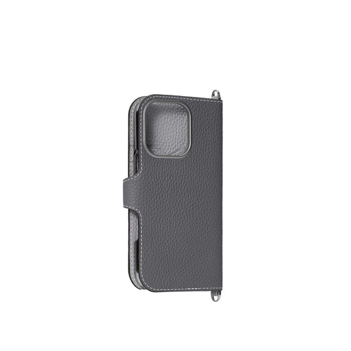 iPhone 16 Pro Belted Diary Case Shrink Leather (Charcoal Gray × True Gray)