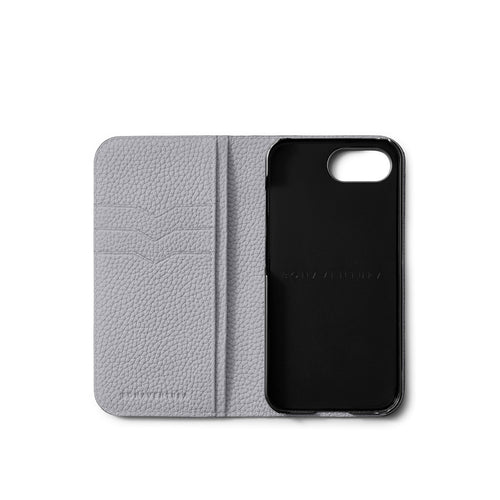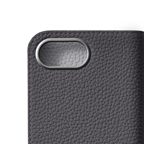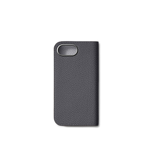 iPhone 16e Diary Case Shrink Leather (Charcoal Gray × True Gray)