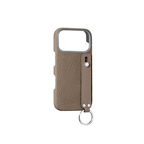 iPhone 17 Pro Max Back Cover Case with Handle Shrink Leather (Etoupe - Silver)