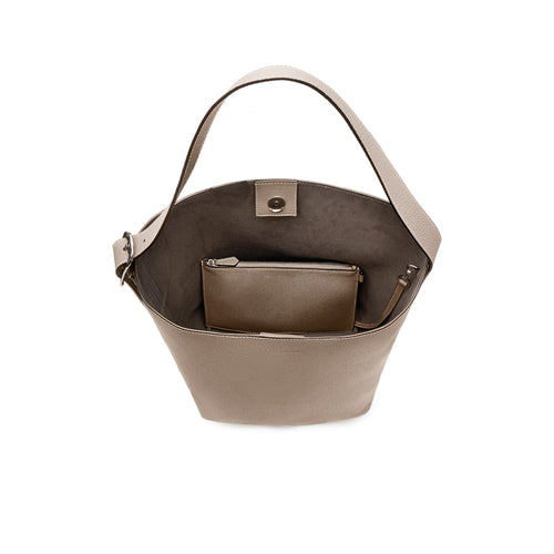 Mina Open Bucket Bag Shrink Leather (Greige - Medium)