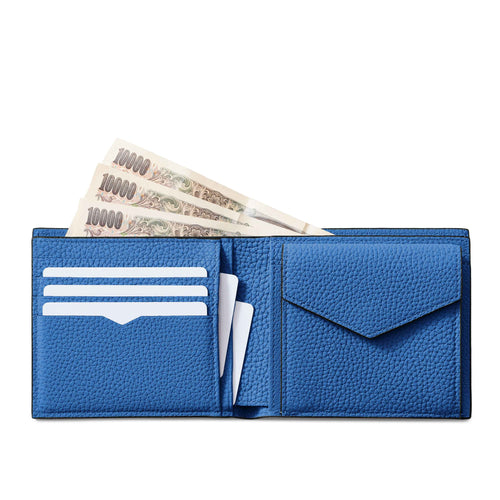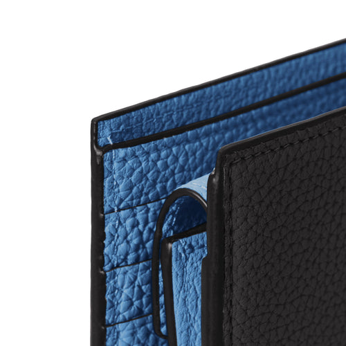 SAVOIA × BONAVENTURA Men's Bi-fold Wallet Shrink Leather (Black × Savoia Blue)