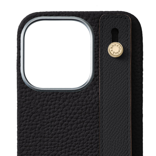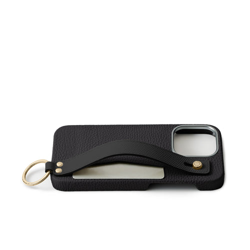 iPhone 16 Pro Back Cover Case with Handle Shrink Leather (Black - Gold)