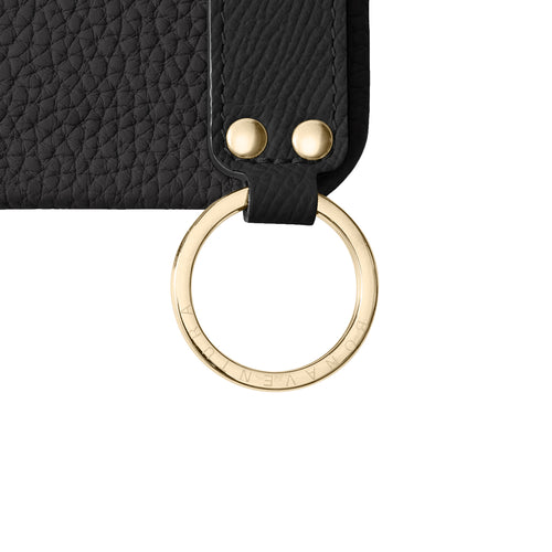• Håndtakets ring gjør det mulig å bruke den på tvers av kroppen med en skulderrem som selges separat, eller du kan feste nøkler, amuletter eller stropper for allsidig bruk.