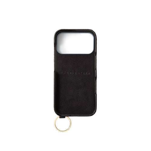 iPhone 17 Pro Max Back Cover Case with Handle Shrink Leather (Black - Gold)