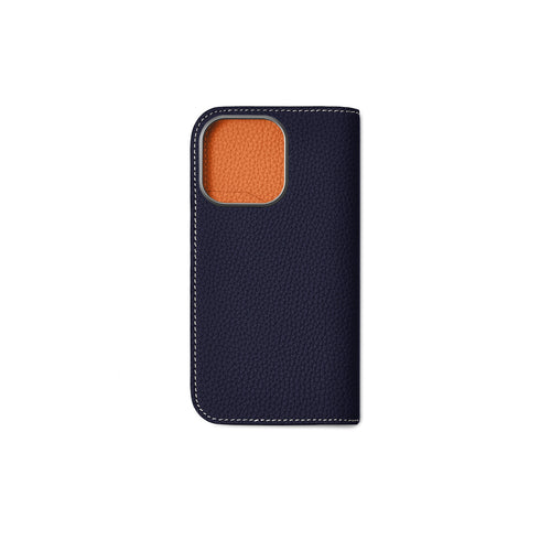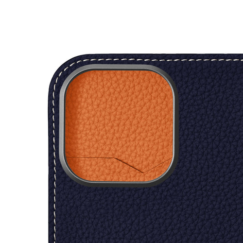 iPhone 16 Pro Diary Case Shrink Leather (Navy × Orange)