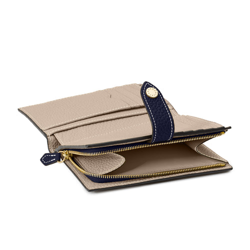 - Ten składany portfel z zatrzaskiem na pasek jest wykonany z najlepszej europejskiej skóry.