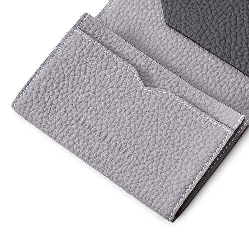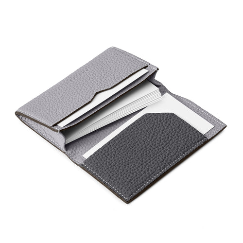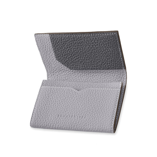 - This seemingly elegant and simple business card holder surprises with a playful bi-color design when opened.