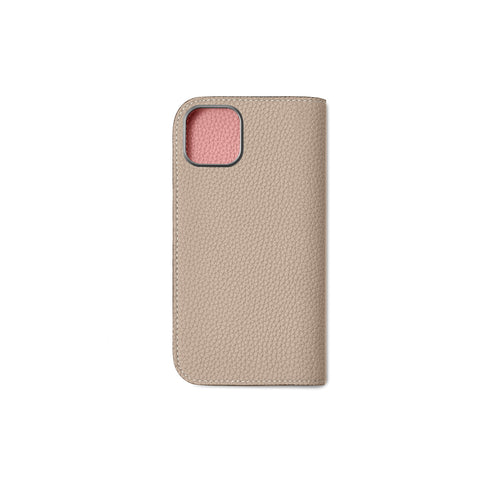 iPhone 16 Plus Diary Case Shrink Leather (Greige × Coral Pink)
