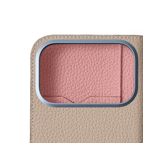 iPhone 17 Pro Diary Case Shrink Leather (Greige × Coral Pink)
