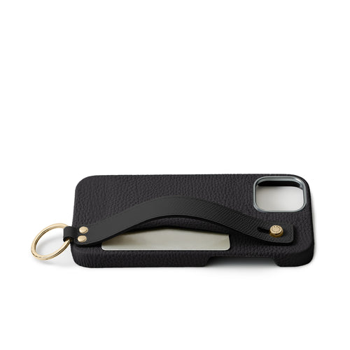 iPhone 17 Back Cover Case with Handle Shrink Leather (Black - Gold)