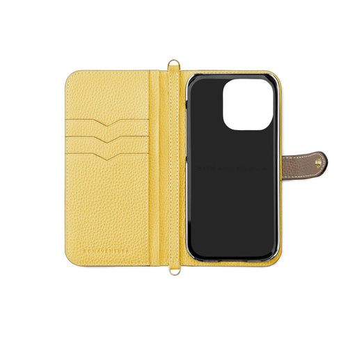 iPhone 14 Pro Belted Diary Case Shrink Leather (Etoupe × Yellow)