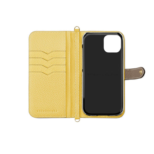 iPhone 14 Plus Belted Diary Case Shrink Leather (Etoupe × Yellow)