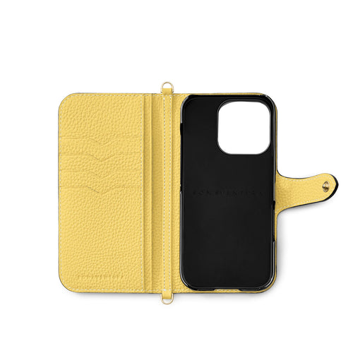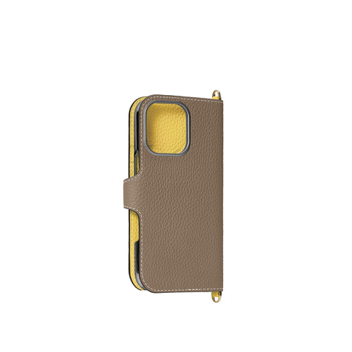 iPhone 16 Pro Max Belted Diary Case Shrink Leather (Etoupe × Yellow)