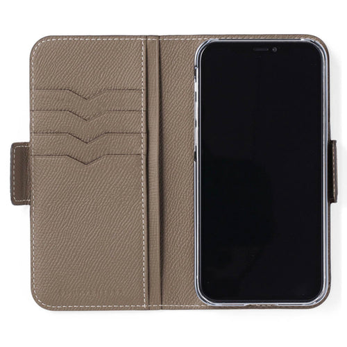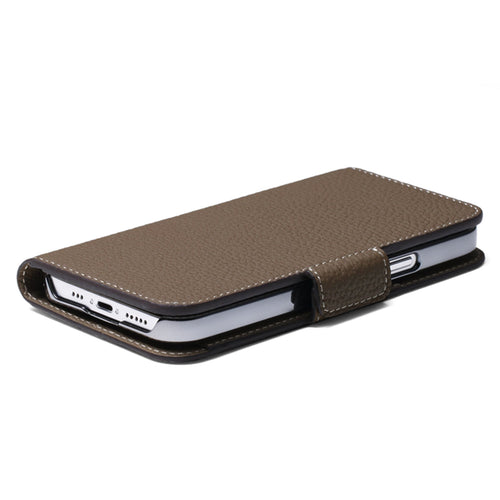 iPhone 14 Pro Max Stand Diary Case Shrink Leather (Etoupe)