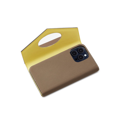 husă IPhone 14 Pro Diary cu oglindă din piele retractabilă