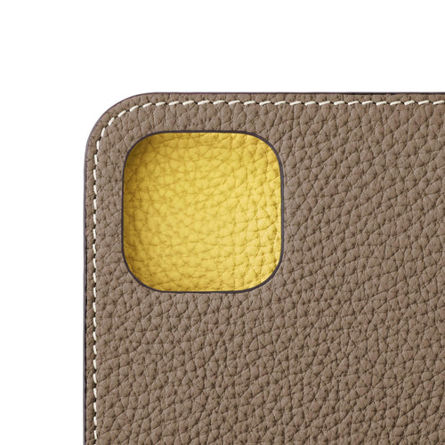 iPhone 15 Diary Case Shrink Leather (Etoupe × Yellow)
