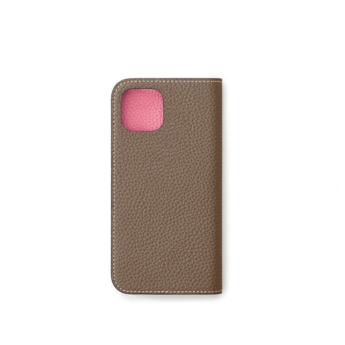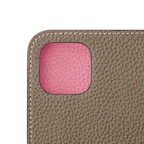 iPhone 15 Plus Diary Case Shrink Leather (Etoupe × Azalee Pink)