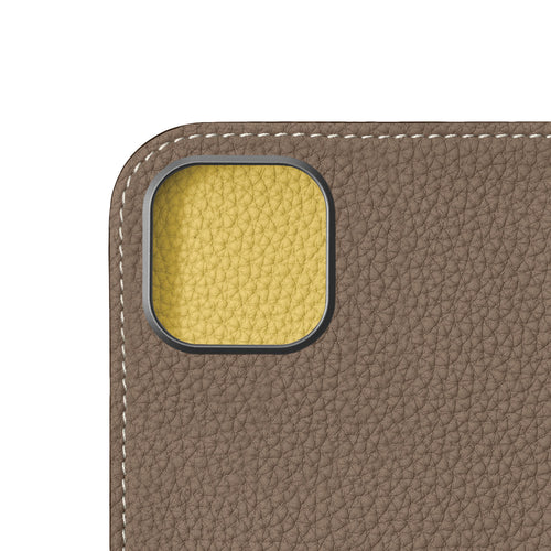 iPhone 16 Plus Diary Case Shrink Leather (Etoupe × Yellow)