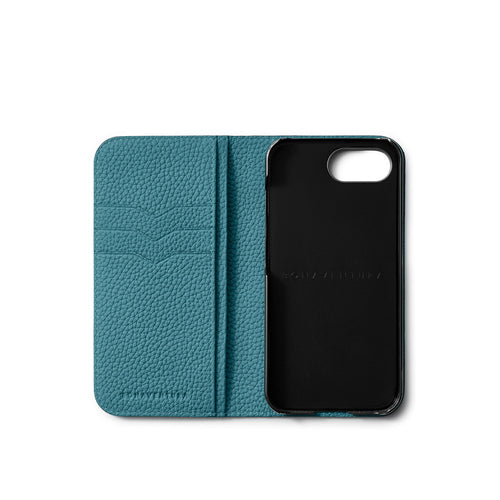 iPhone 16e Diary Case Shrink Leather (Blue Cyan)
