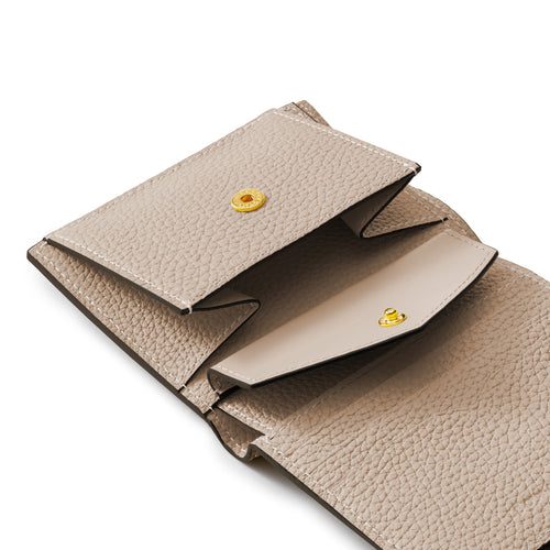 - Pungă pentru monede este proiectată cu un burduf larg pentru acces ușor, rămânând compactă și rezistentă la umflături chiar și atunci când este plină.