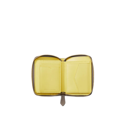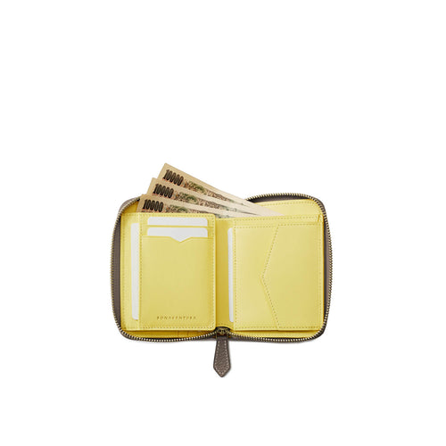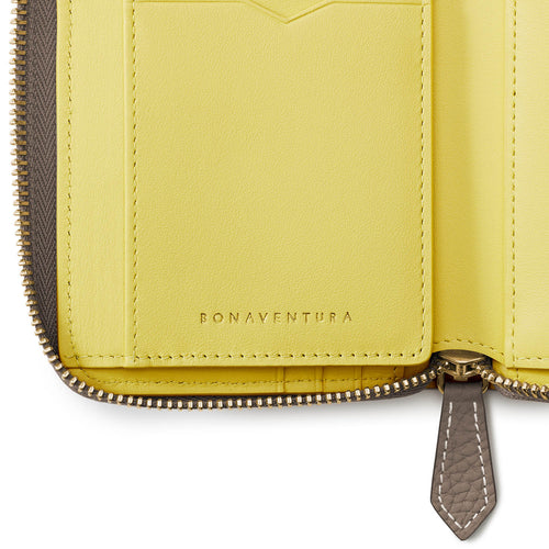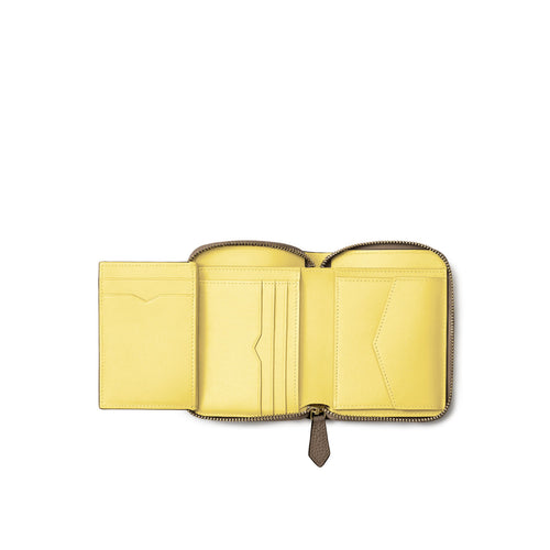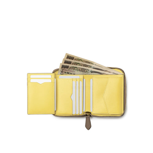 Medium Functional Zip Wallet Shrink Leather (Etoupe × Yellow)