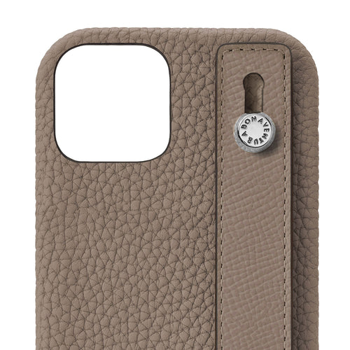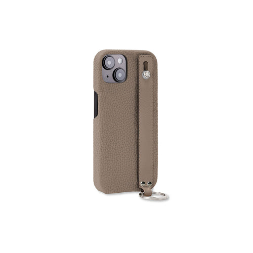 iPhone 14 Back Cover Case with Handle Shrink Leather (Etoupe - Silver)